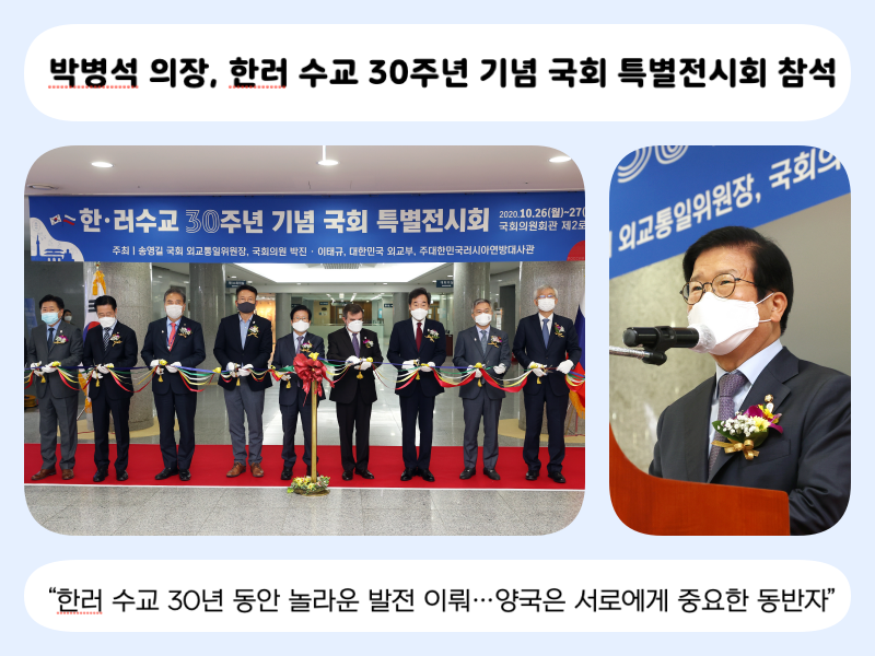 박병석 의장, 한러 수교 30주년 기념 국회 특별전시회 참석 |