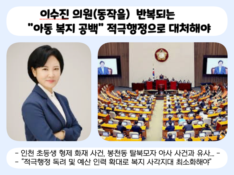 이수진 의원(동작을) 「반복되는 아동 복지 공백, 적극행정으로 대처해야」 |