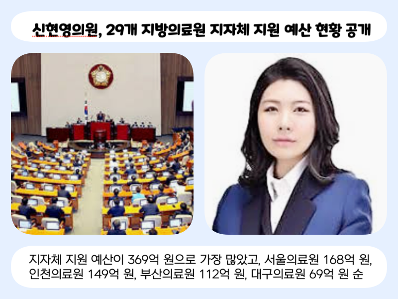 신현영의원, 29개 지방의료원 지자체 지원 예산 현황 공개 |