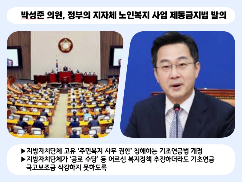 박성준 의원, 정부의 지자체 노인복지 사업 제동금지법 발의 |