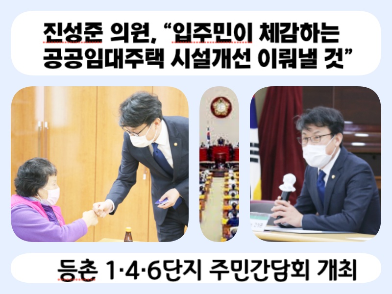 서울 강서을 진성준 의원(더불어민주당, 국회 국토교통위원회)이 <등촌3동 주공아파트 1·4·6단지 입주민 연속간담회>에서 “강서구 공공임대주택 다수가 준공 수십 년이 지난 노후 아파트”라며 “입주민이 체감할 수 있는 시설개선을 이뤄낼 것”이라고 밝혔다.