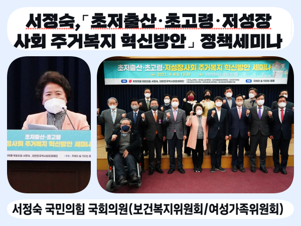 서정숙 국민의힘 의원, ⌜초저출산·초고령·저성장 사회 주거복지 혁신방안⌟ 국회 정책세미나 개최