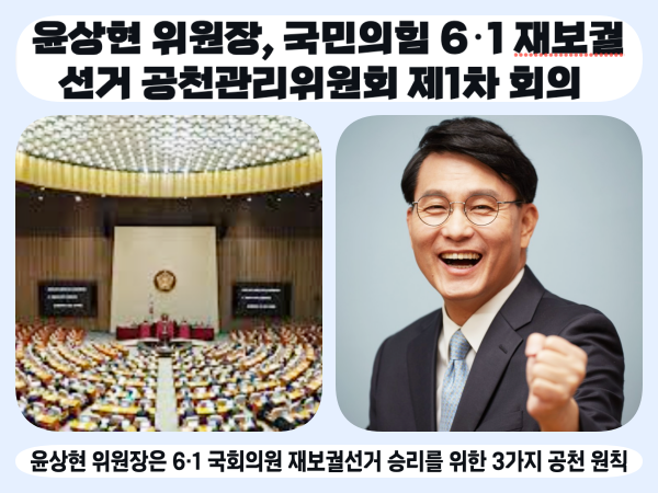 한편, 윤상현 위원장은 6·1 국회의원 재보궐선거 승리를 위한 3가지 공천 원칙으로 정했다.