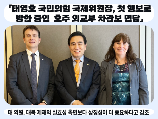 「태영호 국민의힘 국제위원장, 첫 행보로 방한 중인 호주 외교부 차관보 면담」 |