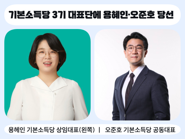 한편, 용혜인 상임대표는 1990년 부천 출생으로, 기본소득당의 원내대표이자 국회 행정안전위원회·여성가족위원회·민생경제특별위원회의 위원이다. 오준호 공동대표는 1975년 대구 출생으로, 기본소득당 제20대 대통령 선거 후보로 출마했다. 기본소득한국네트워크의 운영위원이며, 저서로는 「기본소득이 세상을 바꾼다」, 「세월호를 기록하다」 등이 있다.