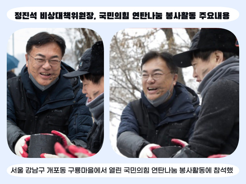 정진석 비상대책위원장, 국민의힘 연탄나눔 봉사활동 주요내용