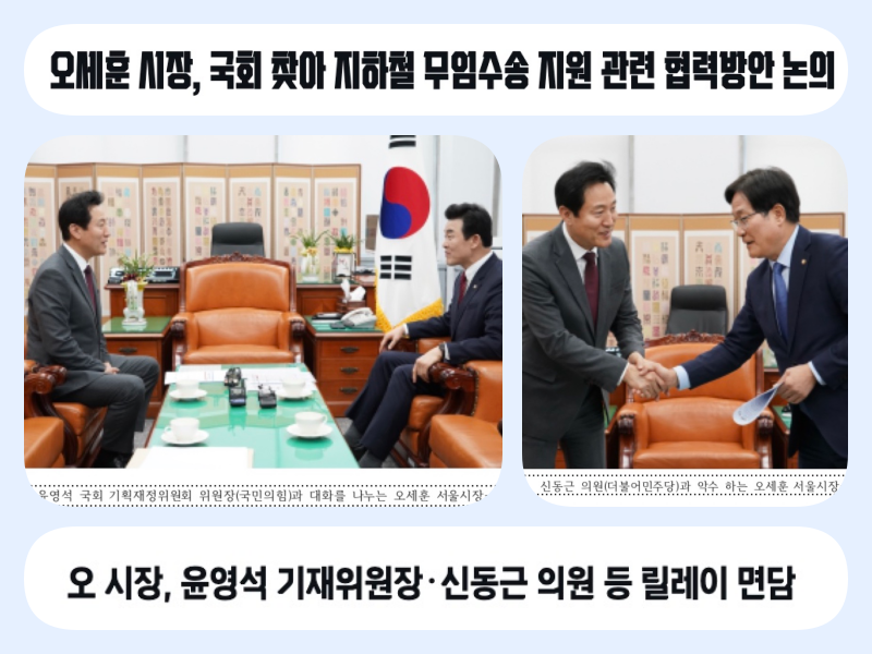 오세훈 시장, 국회 찾아 지하철 무임수송 지원 관련 협력방안 논의 |