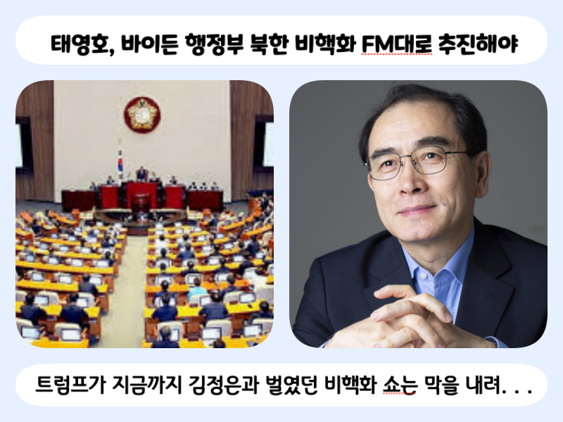 태영호, 바이든 행정부 북한 비핵화 FM대로 추진해야 |