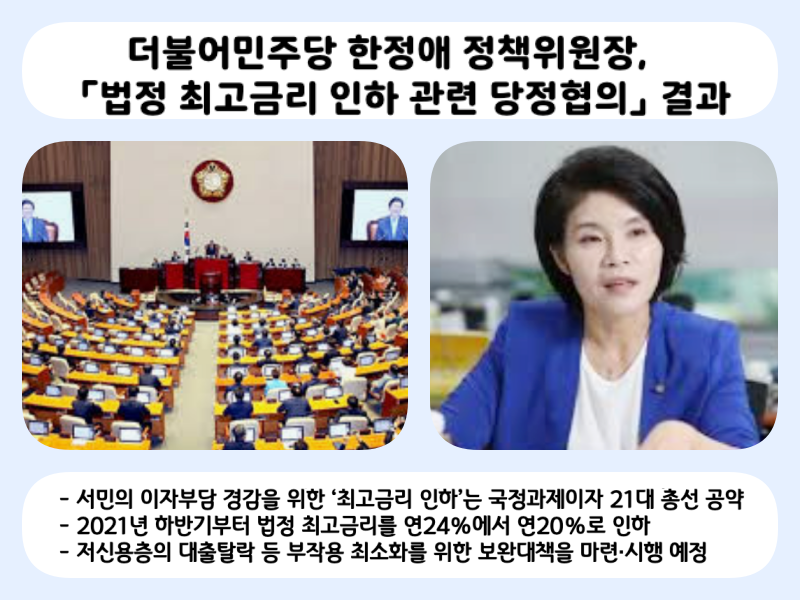 한정애 정책위원장, 「법정 최고금리 인하 관련 당정협의」결과 |