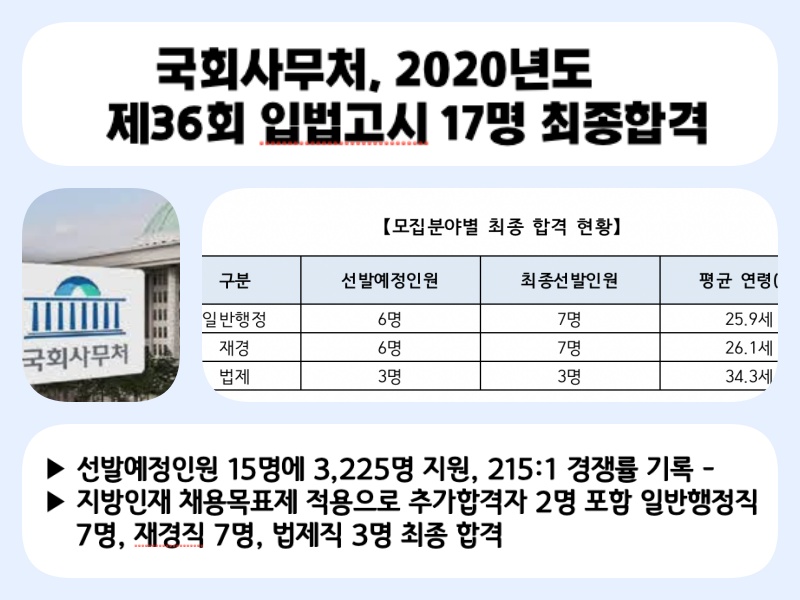 국회사무처, 2020년도 제36회 입법고시 17명 최종합격 |