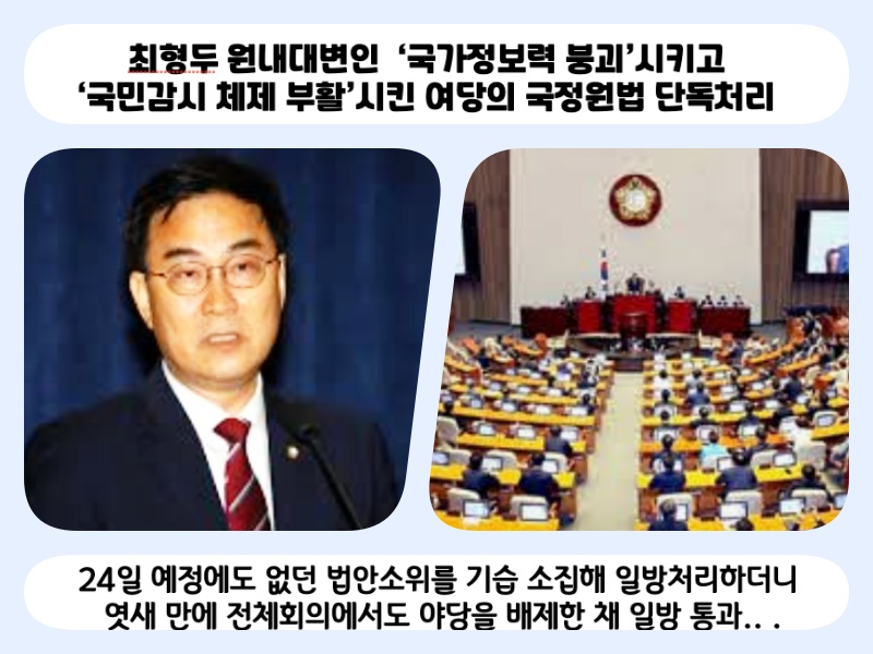 최형두 원내대변인 ‘국가정보력 붕괴’시키고 ‘국민감시 체제 부활’시킨 여당의 국정원법 단독처리 |