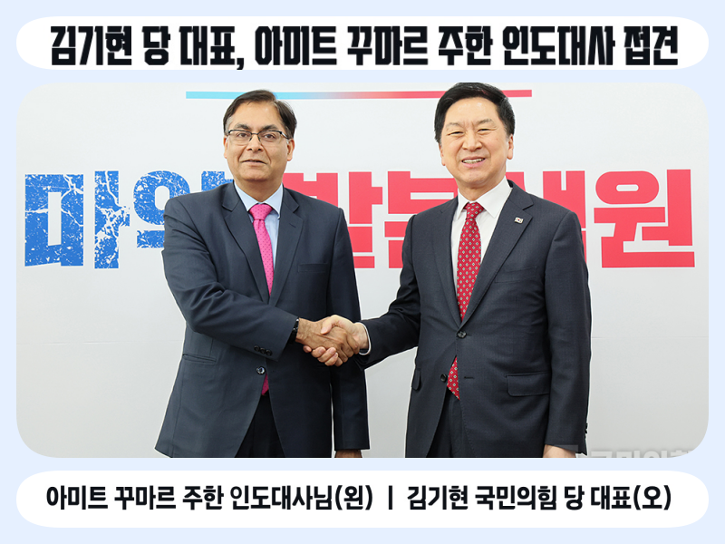 김기현 당 대표는 2023. 4. 17.(월) 14:30, 국회 본관 228호에서 아미트 꾸마르 주한 인도대사를 접견했다. 주요내용은 다음과 같다.