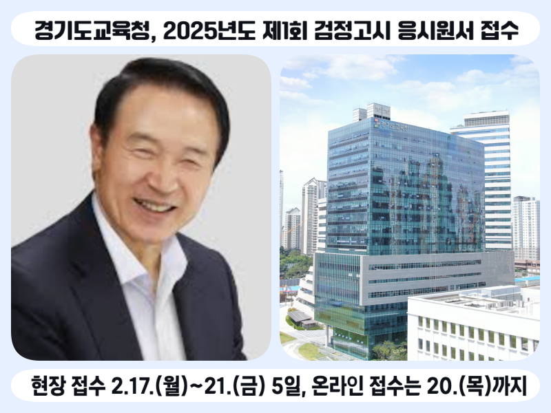 경기도교육청, 2025년도 제1회 검정고시 응시원서 접수 현장 접수 2.17.(월)~21.(금) 5일, 온라인 접수는 20.(목)까지 |