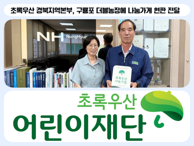 초록우산 경북지역본부, 구룡포 더블농장에 나눔가게 현판 전달 |