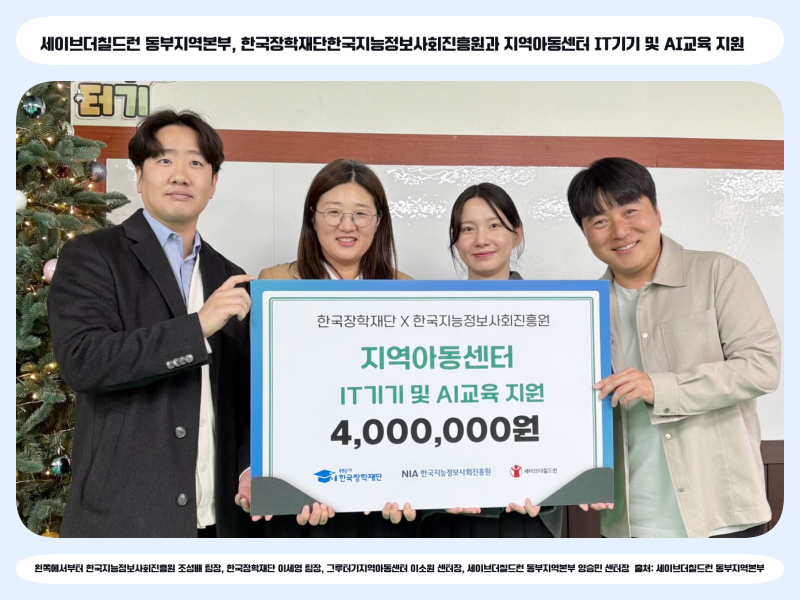 세이브더칠드런 동부지역본부, 한국장학재단한국지능정보사회진흥원과 지역아동센터 IT기기 및 AI교육 지원 |
