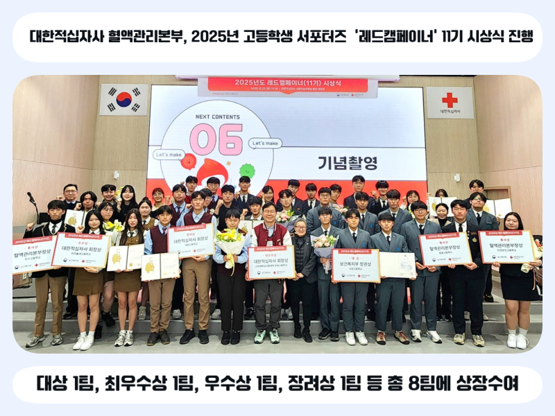 대한적십자사 혈액관리본부, 2025년 고등학생 서포터즈 ‘레드캠페이너’ 11기 시상식 진행 |