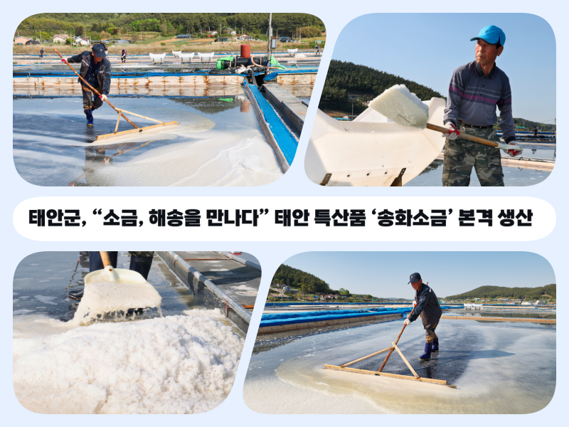 군 관계자는 “태안 송화소금은 온라인과 태안 로컬푸드직매장 등에서 인기리에 판매되는 등 지역 효자 특산물로 자리매김하고 있다”며 “우수한 효능에 맛도 좋은 태안 송화소금을 많은 분들이 맛보시길 바란다”고 말했다.