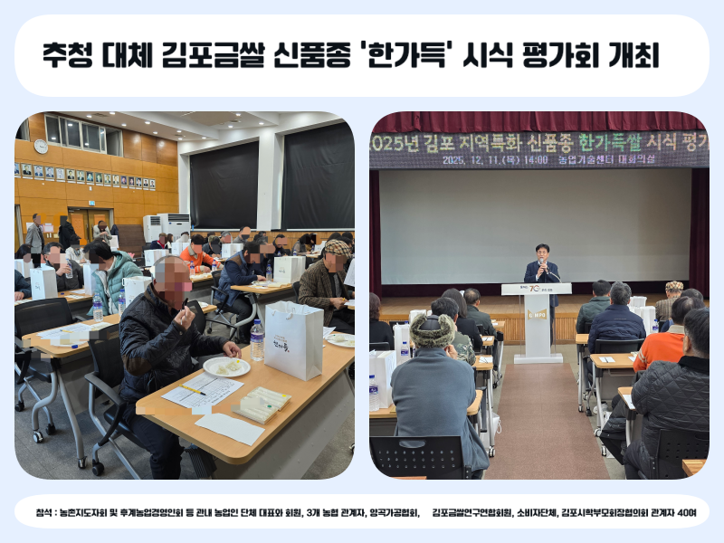 추청 대체 김포금쌀 신품종 ‘한가득’ 시식 평가회 개최​