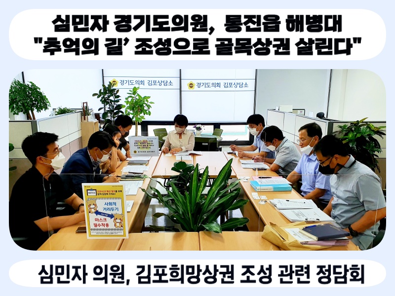 심민자 의원(더불어민주당, 김포1)은 17일 경기도의회 김포상담소에서 경기도와 김포시 경기도시장상권진흥원 업무관계자들이 참석한 가운데 경기도 희망상권프로젝트 사업단으로부터 ‘김포 희망상권 프로젝트’ 추진 경과와 방향을 보고받고 향후 사업 일정을 논의했다.