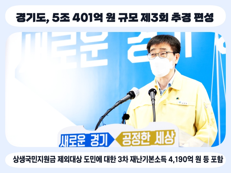 경기도, 5조 401억 원 규모 제3회 추경 편성 상생국민지원금 제외대상 도민에 대한 3차 재난기본소득 4,190억 원 등 포함 |