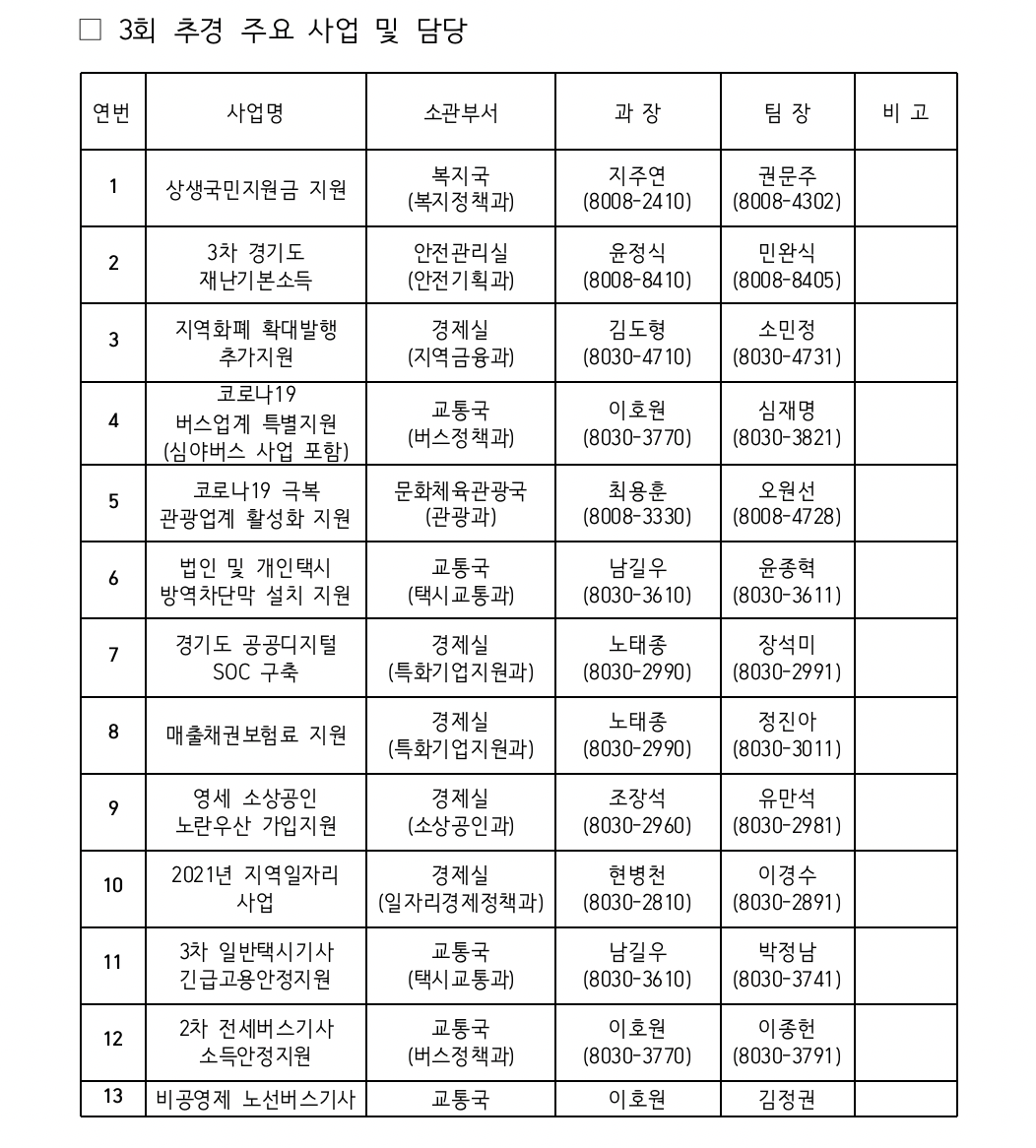 경기도가 37조 5,025억 원 규모의 2021년 제3회 추경예산(안)을 편성했다. 도는 정부 정책을 확장 연계한 전 도민 상생지원금 지급과 코로나19 위기극복을 위한 지역경제 역량강화 등에 역점을 뒀다.
