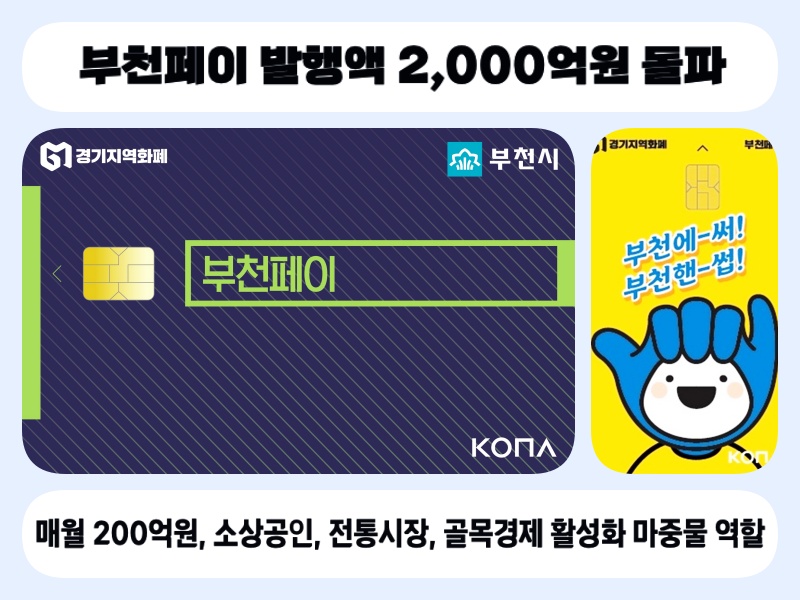 부천시가 발행하는 지역화폐 ‘부천페이’ 발행액이 10월 25일 기준 2,000억 원을 돌파했다.