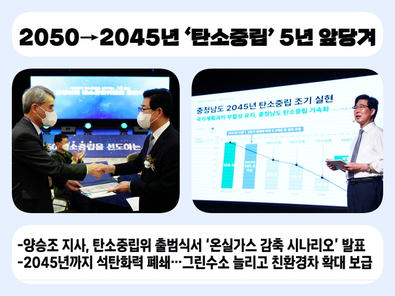 대한민국 탄소중립을 선도하고 있는 충남도가 탄소중립 실현 시기를 2050년에서 2045년으로 5년 앞당긴다.