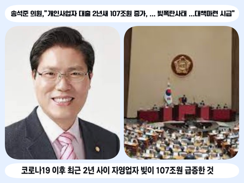 송석준 의원,“개인사업자 대출 2년새 107조원 증가, 경기침체 장기화시 자영업자發 빚폭탄사태 우려...대책마련 시급” |