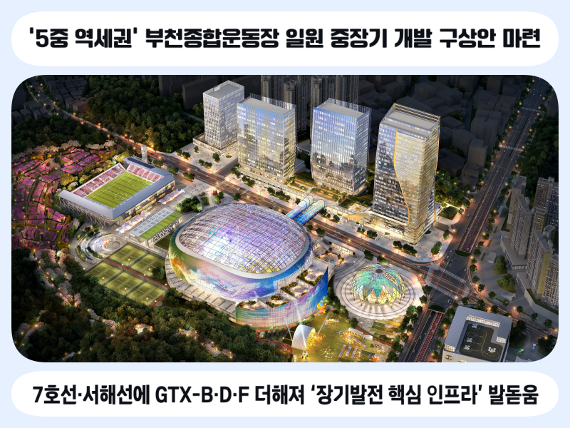 현재 7호선·서해선 환승역인 부천종합운동장역은 향후 수도권광역급행철도(GTX)-B·D·F 노선이 들어서면 5중 역세권으로 발돋움한다. 부천시는 이를 장기발전을 이끄는 핵심 인프라로 활용하기 위해 지난 2022년 7월부터 지난해 말까지 ‘종합운동장 역세권 장기개발 구상 용역’을 진행했다.
