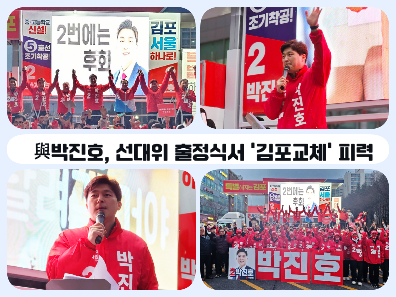 박진호 후보는 그러면서 “김포시민 여러분께서 부여해주신 준엄한 권력을 엉뚱한 데 쓴 세력에겐 무서운 회초리를 들어주셔야 한다”고 촉구했다.