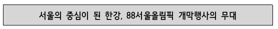 올해는 평창동계올림픽이 열린 해이자 88서울올림픽 30주년이 되는 해다. 서울은 88서울올림픽을 계기로 스포츠뿐만 아니라 경제, 문화, 사회 전 영역에서 국제적 도시로 성장하는 거대한 변화와 도약의 시기를 맞았다.