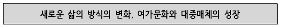올림픽 체육 열풍은 야구('82년 프로야구 출범), 씨름('83년 천하장사 씨름대회) 등 프로스포츠의 창설로 이어졌고, 직장체육인대회, 학생체육, 생활체육 등 시민생활 전반에 체육여가문화가 정착되기 시작했다. 또, 경제적 풍요는 소비 확산으로 이어져 부의 상징이었던 자동차가 생활에 주요역할을 담당하는 생필품으로 자리 잡기 시작했고 어디든 자유롭게 여행과 여가를 즐길 수 있는 ‘마이카(My Car)’ 시대를 열었다.