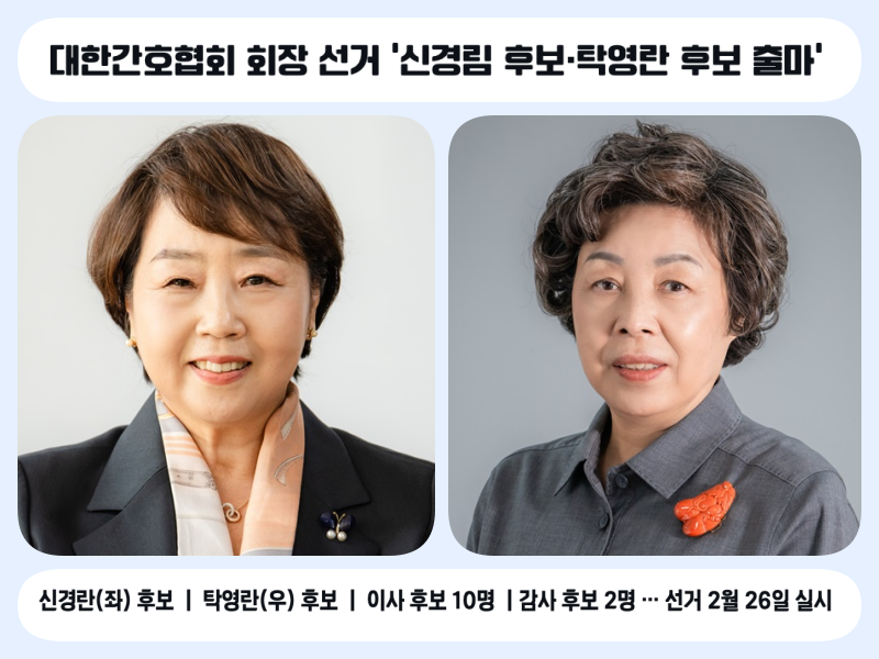 대한간호협회 제40대 회장 선거에 신경림 현 간호법제정특별위원회 위원장과 탁영란 현 회장이 출마한다.