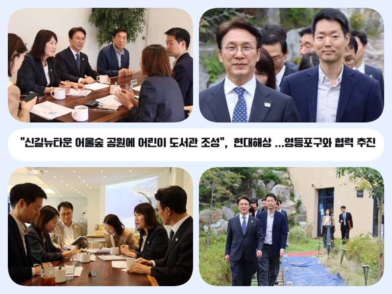 서울 영등포구 신길뉴타운 어울숲 공원에 아이들을 위한 도서관 건립이 추진되면서 향후 일정에 관심이 커지고 있다. 이번 사업은 현대해상이 추진하는 사회공헌사업으로 김민석 국회의원 지역구 내 대표 협력 사업으로 진행된다. 따라서 영등포을 지역위원회(김민석 국회의원, 신흥식 지역위원장 직무대행)와 영등포구청이 협력해 추진하면서 지역사회를 위한 민관협력 공공 프로젝트로 의미가 크다.