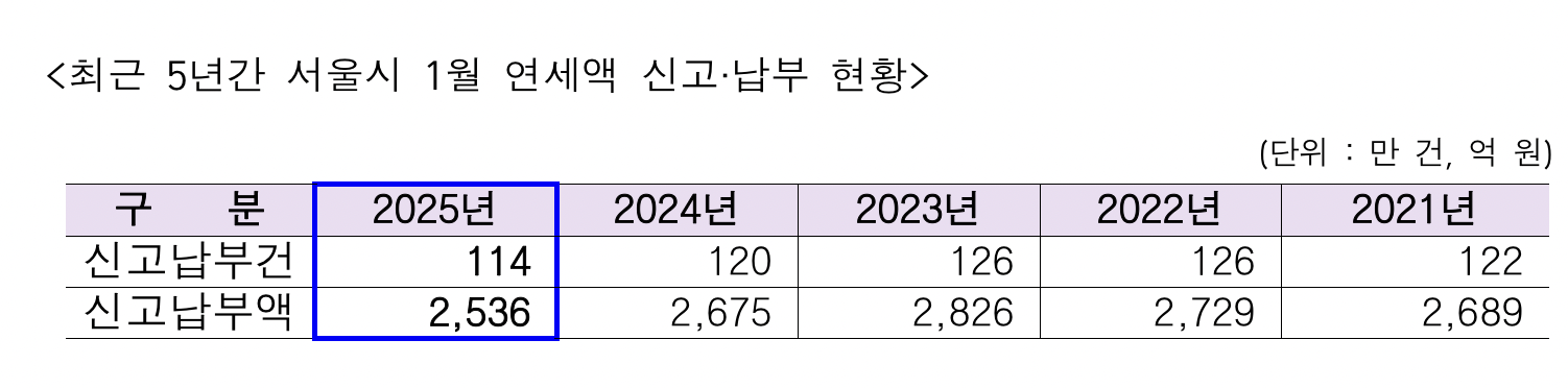 서울시는 전년도까지 자동차세 연세액 신고·납부 신청을 한 납세자 편의를 위해 『2026년도 1월 자동차세 연세액 신고납부서』를 일제히 발송 하였으며, 1월 16일(금)부터 2월 2일(월)까지 서울시 ETAX(etax.seoul.go.kr) 및 STAX(모바일 앱) 등 전자 납부 수단을 통해 신고납부 가능하다.