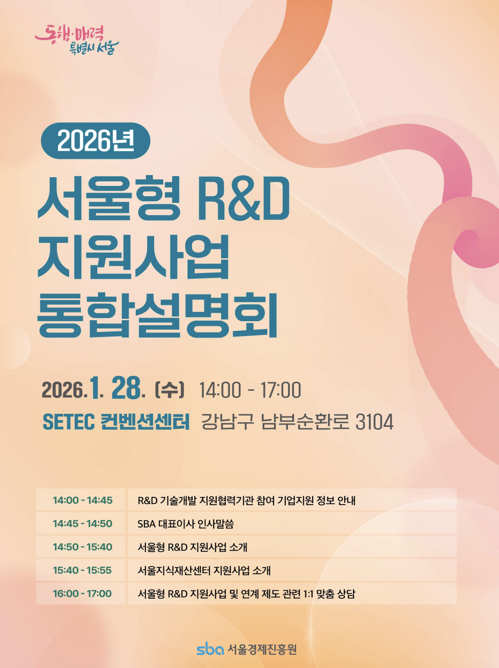 자세한 사항은 ‘서울경제진흥원 R&D지원센터(seoul.rnbd.kr)’ 누리집에서 확인할 수