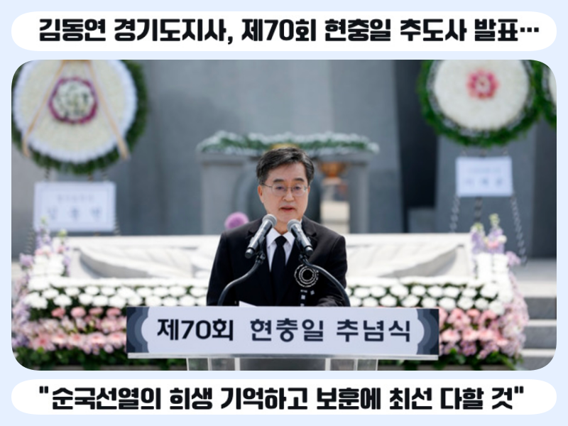 김동연 경기도지사는 6일 제70회 현충일을 맞아 추도사를 발표하고, 순국선열과 호국영령의 숭고한 희생에 깊은 존경과 감사를 표했다.