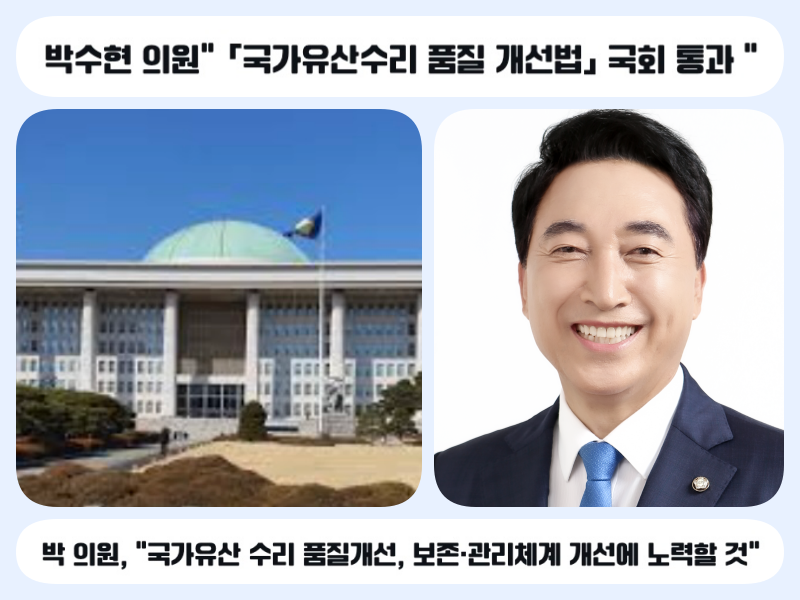 박수현 의원“ 「국가유산수리 품질 개선법」 국회 통과 ” |