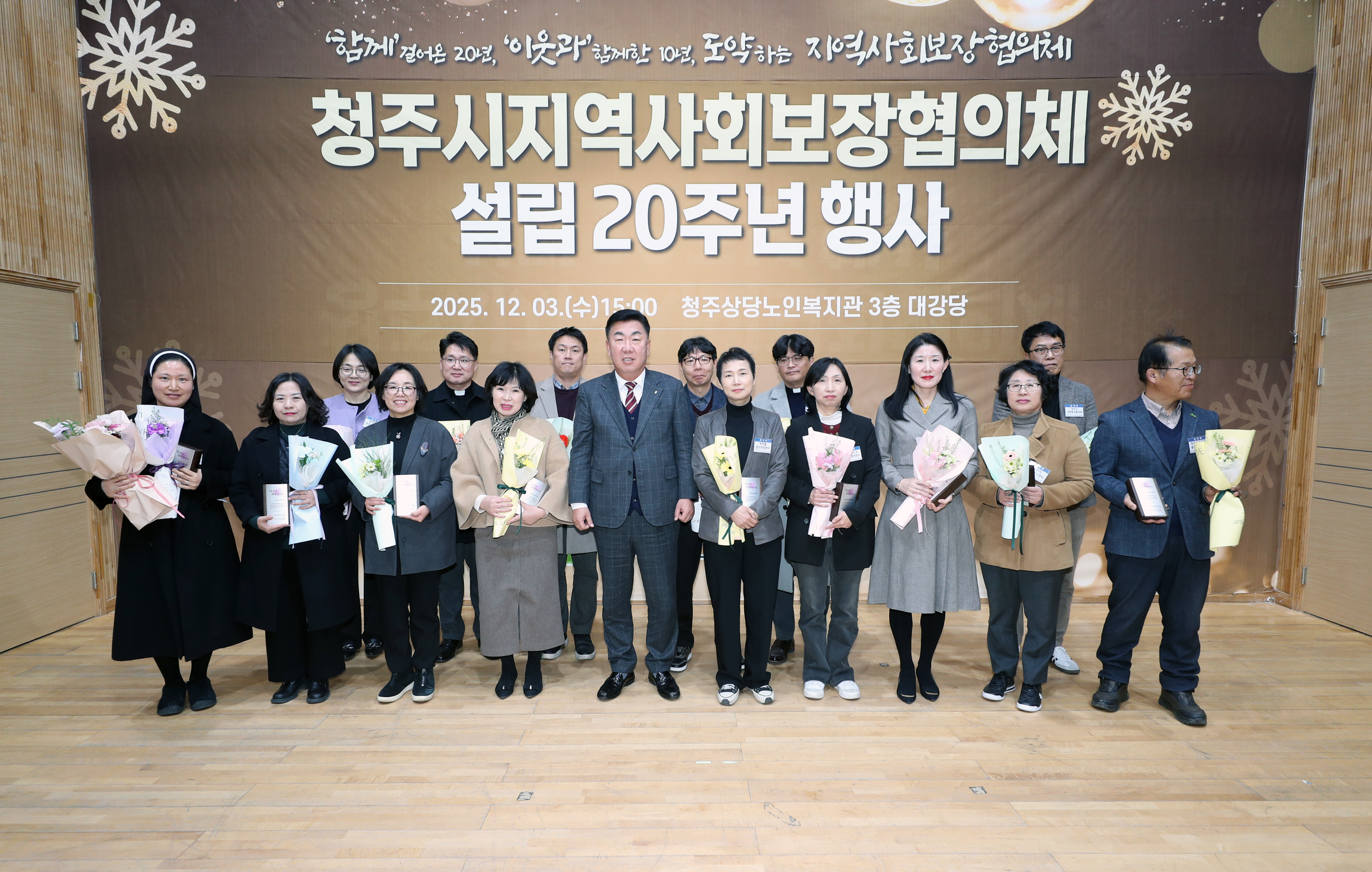 청주시 지역사회보장협의체(공동위원장 이범석, 김현진)는 3일 청주상당노인복지관 3층 대강당에서 설립 20주년 기념행사를 개최했다.