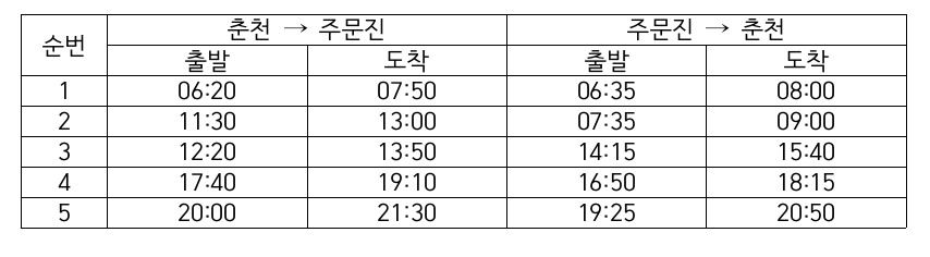 춘천~주문진, 6월 10일부터 시외버스 운행 개시 – 1일 5회 운행… 주문진 주민 및 관광객 교통편의 기대 – |