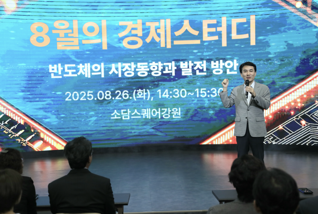 강원특별자치도(도지사 김진태)는 12월 8일 한국은행에서 강원도로 파견된 김대용 경제정책보좌관이 2026년 경제전망을 주제로 강의하며, 2025년도 강원경제스터디 마지막 강좌를 개최했다고 밝혔다.