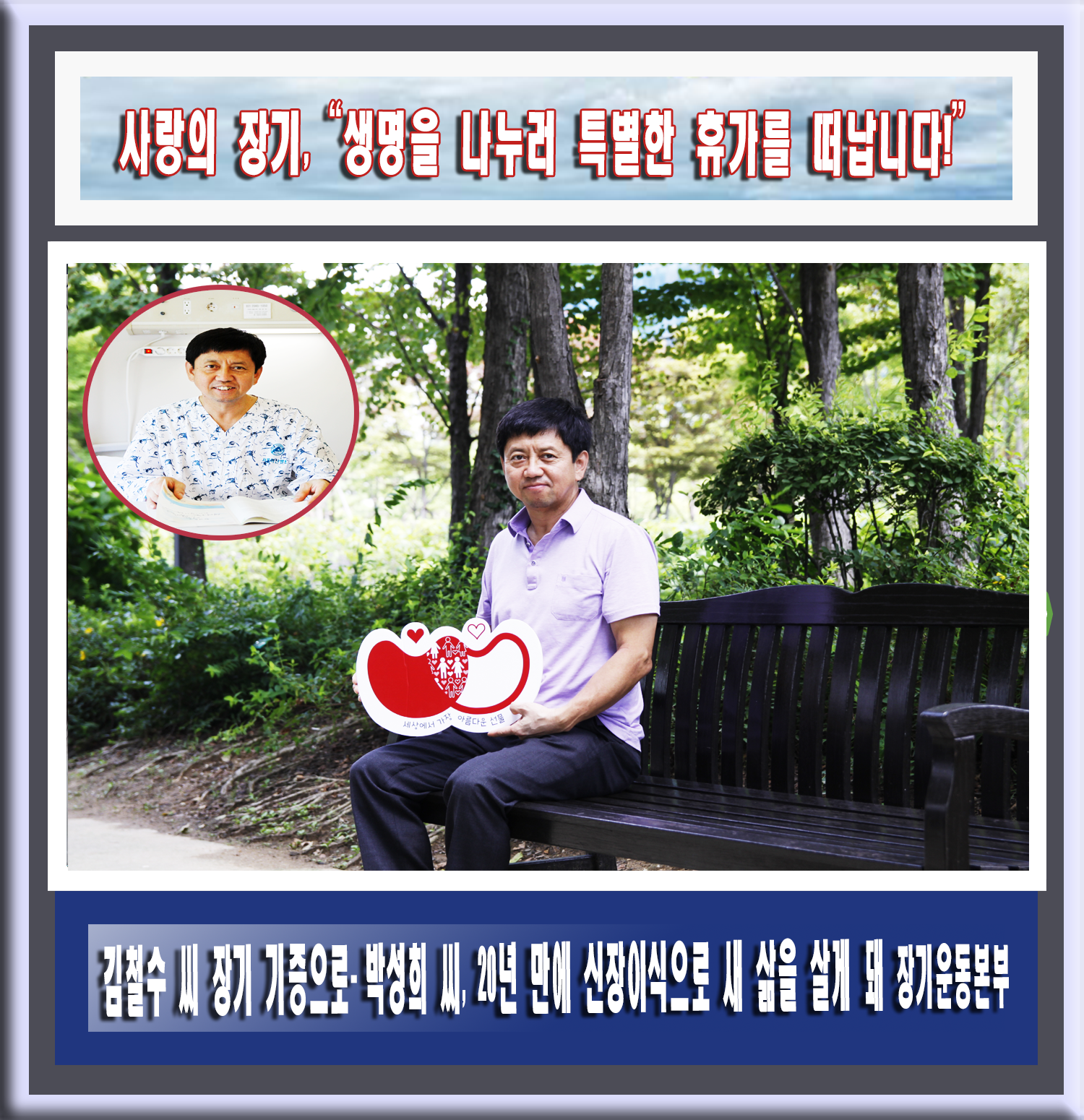 피서지로 인파들이 몰리는 여름휴가 기간, 특별한 나눔을 위해 짐을 꾸리는 주인공이 있다. 바로 신장기증인 김철수 씨(59세, 인천 남동구)다. 평소 건강 하나만큼은 자신 있다고 자부하던 김 씨는 자신이 가진 건강을 나눠 이웃을 돕고자 특별한 여정에 오른다.