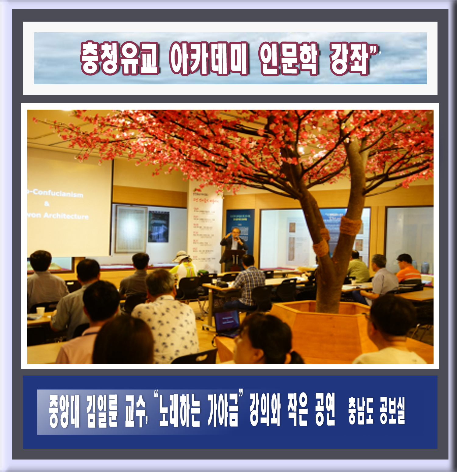 오는 30일에 진행하는 다섯 번째 강좌는 「노래하는 가야금」 이라는 주제로 김일륜 중앙대 교수의 강연이 예정되어 있다. 가야금의 역사부터 연주법과 가야금산조, 충청도 음악 등 강연과 작은 공연을 준비하여 참가자들의 기대를 모으고 있다.