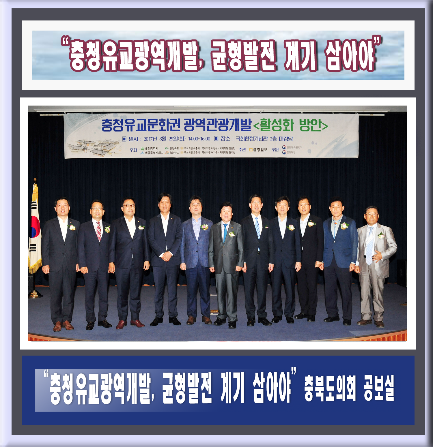 충청을 지역구로 둔 이종배·이장우·김종민·조승래·어기구·권석창 등 국회의원들은 축사를 통해 충청지역은 유교문화가 집성된 곳임에도 뛰어난 유교문화들을 보고 체험할 수 있는 관광자원이 개발되지 않아 관광객 유입으로 이어지지 못하고 있다는 데 인식을 같이 했다.