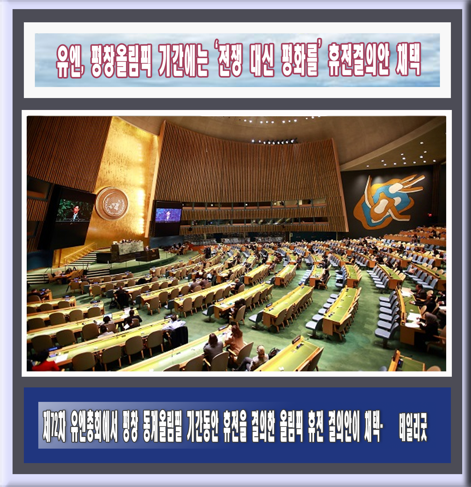 - 제72차 유엔총회에서 평창 동계올림필 기간동안 휴전을 결의한 올림픽 휴전 결의안이 채택 - |