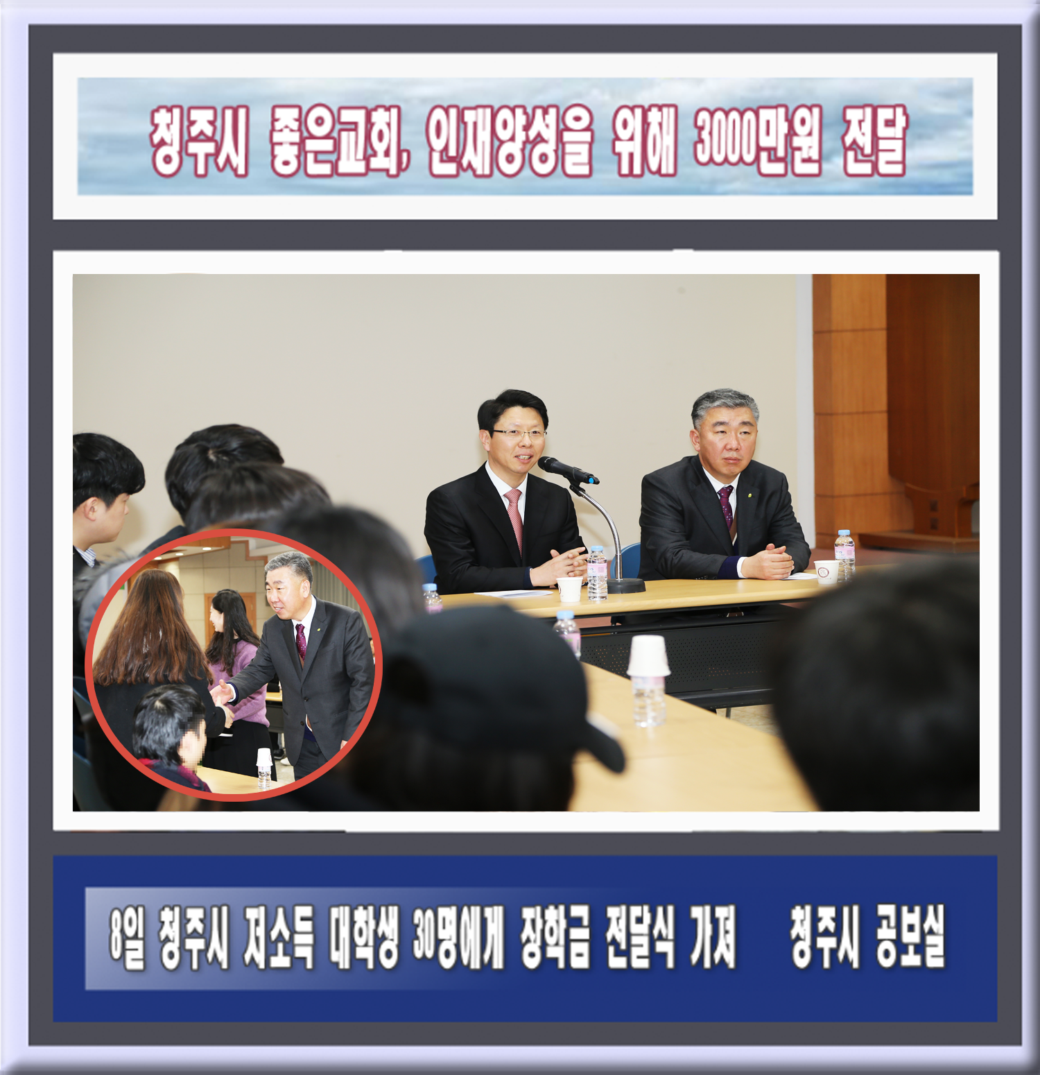 - 8일 청주시 저소득 대학생 30명에게 장학금 전달식 가져 - |
