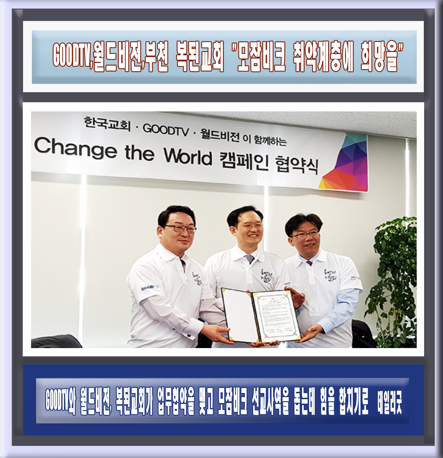GOODTV와 월드비전, 복된교회가 업무협약을 맺고 모잠비크 선교사역을 돕는데 힘을 함치기로... |