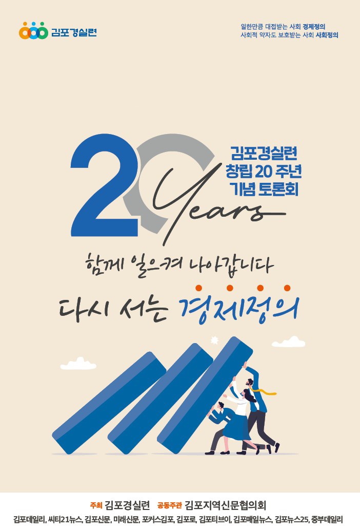김포경제정의실천시민연합이 창립 20주년을 기념하고 김포의 다양한 의제에 대해 고민하는 토론회를 김포지역신문협의회와 공동주관으로 개최한다.