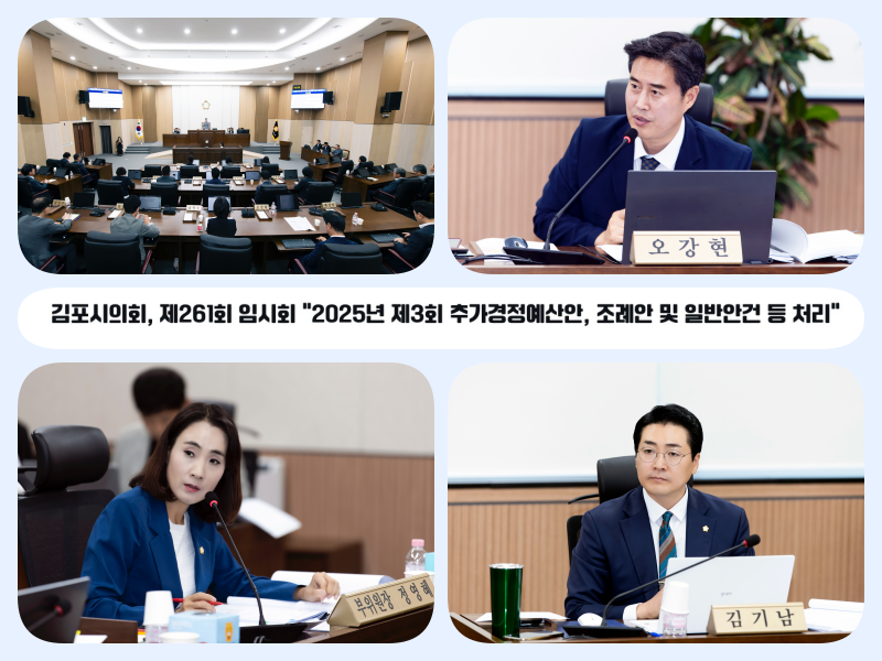 김포시의회(의장 김종혁, 이하 시의회)는 9월 19일 제261회 임시회 제2차 본회의를 끝으로 9일간의 회기를 마무리했다. 이번 임시회에서는 2025년도 제3회 추가경정예산안 및 기금운용계획 변경안을 비롯해 조례안 및 일반안건 등을 처리했다.