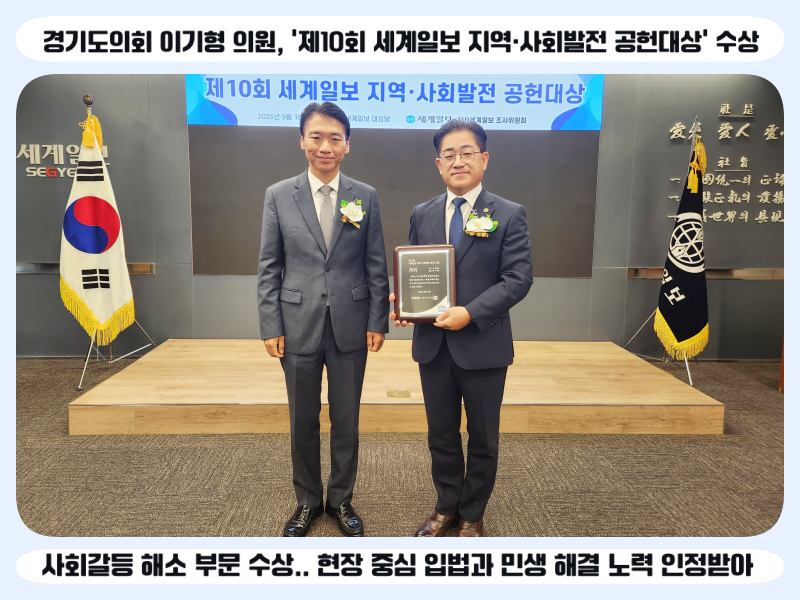 경기도의회 이기형 의원, ‘제10회 세계일보 지역·사회발전 공헌대상' 수상 |